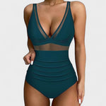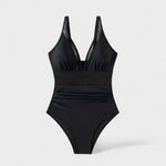 Este fato de banho é o equilíbrio perfeito entre sofisticação e ousadia. Com recortes em tule transparente e decote profundo, ele valoriza as curvas com elegância e atitude. Ideal para quem quer se destacar na praia ou na piscina com um visual moderno e poderoso.