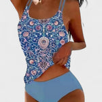 Este fato de banho de duas peças junta o melhor de dois mundos: o conforto de um tankini e o toque boémio de um estampado vibrante. Com alças duplas para maior suporte e um corte assimétrico que realça a silhueta, esta peça é perfeita para quem quer destacar-se na praia ou na piscina com um look original e cheio de personalidade.