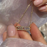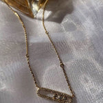 O nosso requintado colar Melissa em ouro amarelo, prata ou ouro rosa e diamantes caracteriza-se por três diamantes em movimento e de lapidação brilhante. O design em filigrana com um elegante pavé realça o brilho dos diamantes.