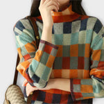 Este confortável e elegante suéter destaca-se pelo seu vibrante padrão xadrez. Com um decote alto e um corte que favorece, é uma peça de destaque que realça qualquer conjunto com facilidade.
