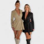 Destaque seu estilo com nosso deslumbrante Vestido Blazer com Decote em V.