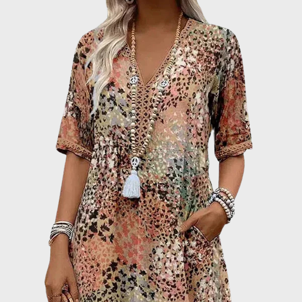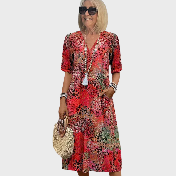 Clara | Vestido Midi Suave com Decote em V – Elegância Natural Para Todos os Dias