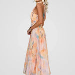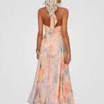 Entre na estação com o vestido Emília, uma fusão deslumbrante de suavidade e sofisticação. Com um estampado aquarela em tons quentes de pêssego, capta na perfeição a leveza dos dias de verão. O decote elegante e as costas com laçada conferem um charme clássico, enquanto o chiffon leve cai com fluidez, realçando a cintura e proporcionando um corte feminino e favorecedor – ideal para qualquer ocasião solarenga.