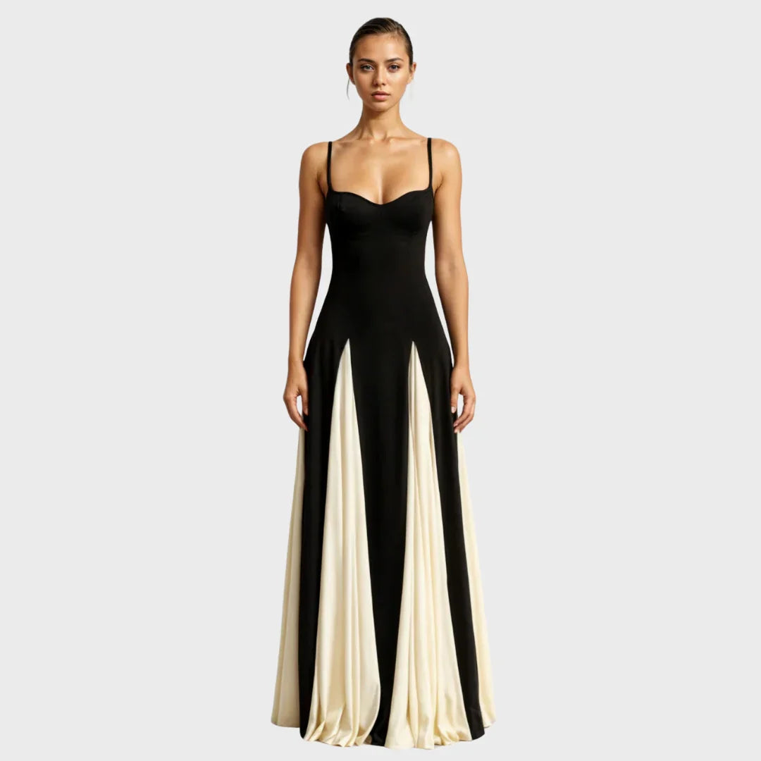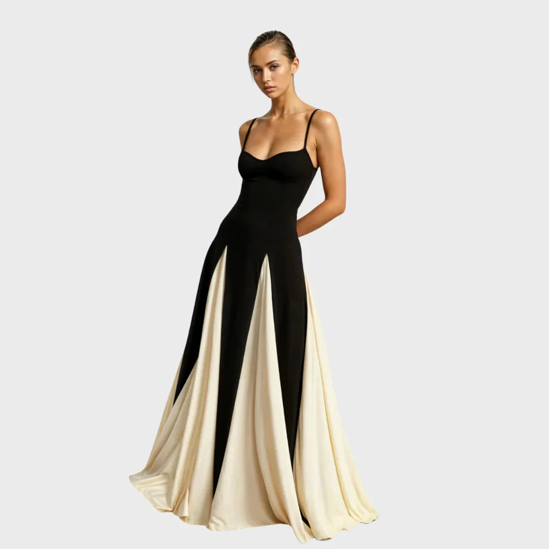 Entre no universo da confiança serena e da sofisticação intemporal com o Cláudia Maxi Dress.