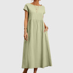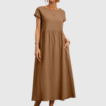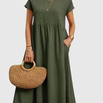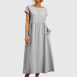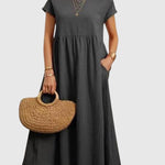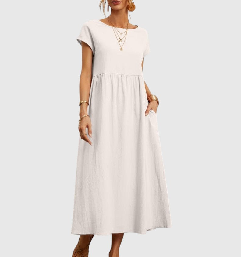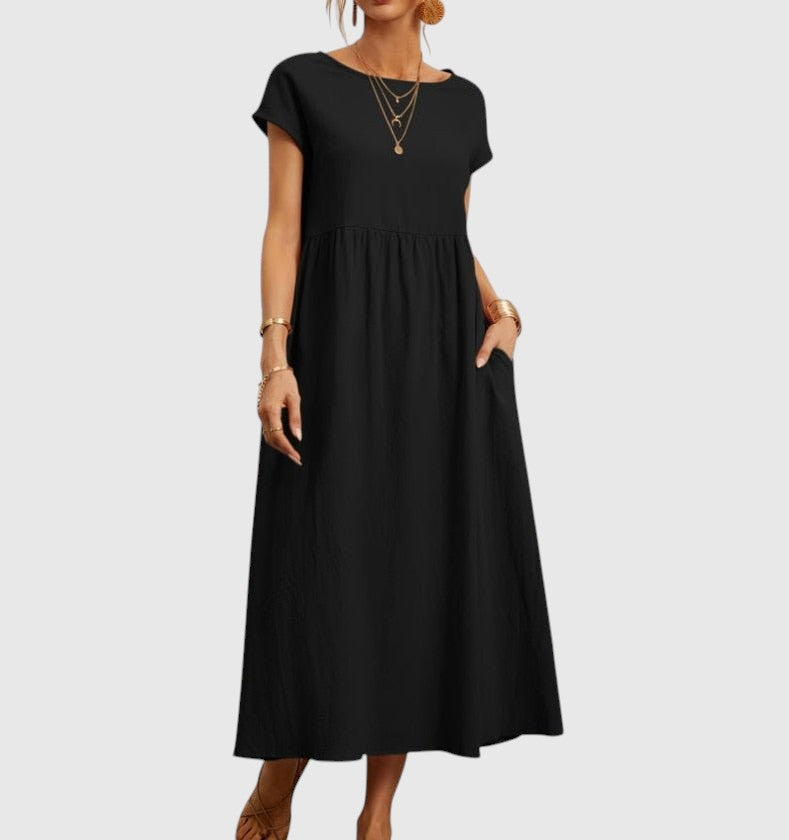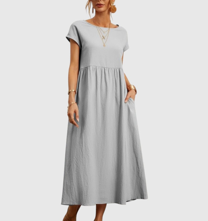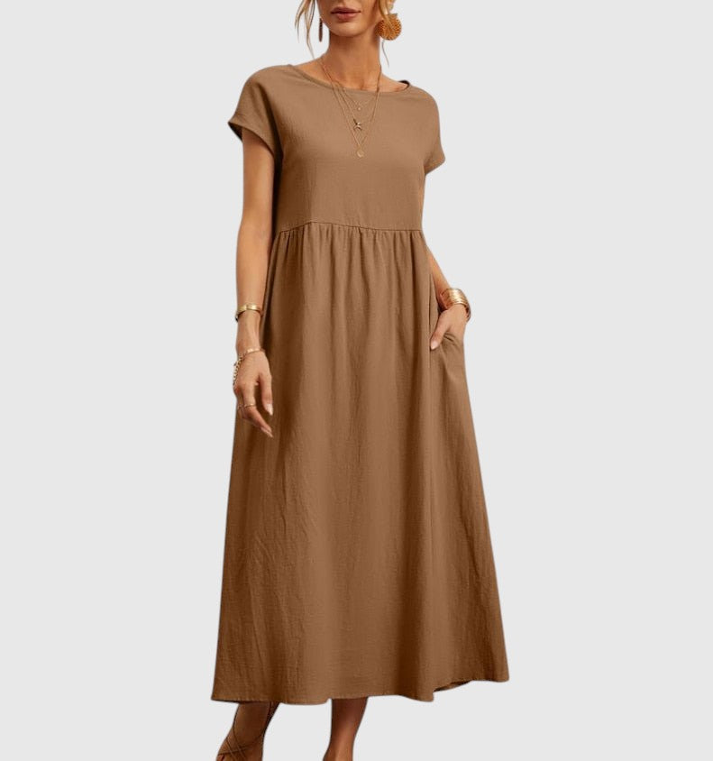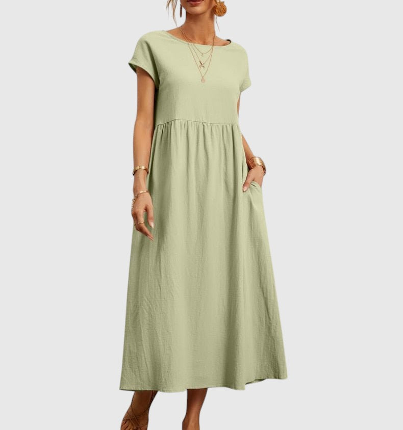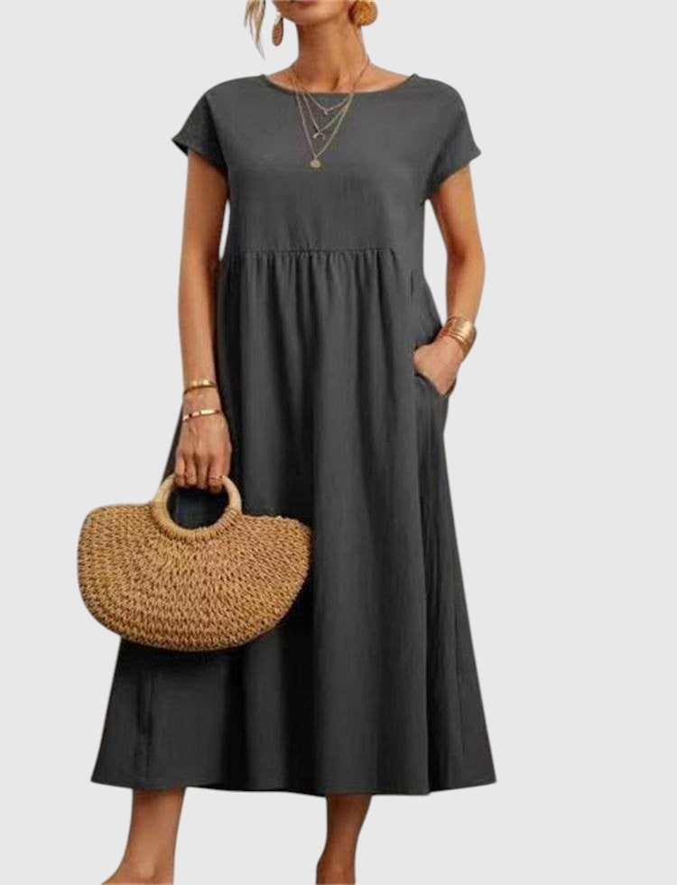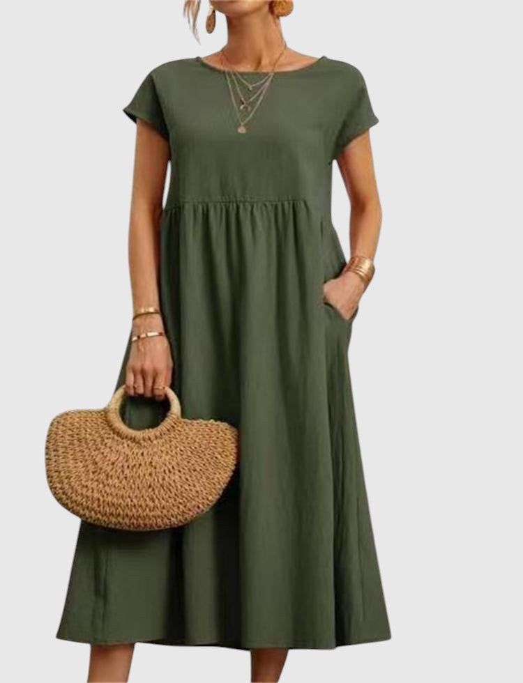 Tyto vzdušné letní šaty jsou ztělesněním jednoduché elegance a maximálního pohodlí. Díky volnému střihu krásně splývají po těle, poskytují volnost pohybu a zároveň zvýrazňují ženskost. Praktické kapsy dodávají modelu moderní a uvolněný nádech – ideální volba pro každodenní nošení, dovolenou nebo volný víkend.