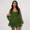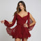 Udělejte nezapomenutelný dojem v těchto sofistikovaných minišatech, které spojují smyslnost a eleganci. Lehký a vzdušný materiál, dramatické balónové rukávy a ženský zavinovací střih vytvářejí dokonale vyváženou siluetu. Ideální volba pro večerní akce, romantická rande nebo společenské příležitosti, kde chcete zazářit.
