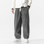 O conforto requintado alia-se ao estilo intemporal - as calças de veludo às riscas Masaaki!