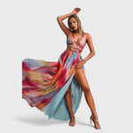 Malované maxi šaty Alžběta přichází s nezapomenutelným dojmem díky své splývavé siluetě a živému akvarelovému designu. Ideální pro večery na pláži, tropické dovolené nebo každý okamžik, který si žádá stylovou eleganci.