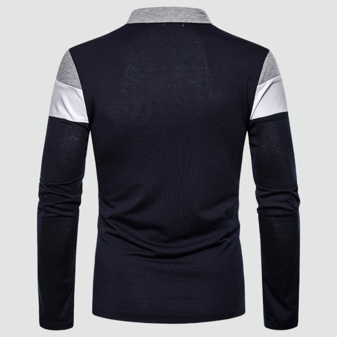 Podignite svoj ležerni stil na višu razinu našom elegantnom polo majicom dugih rukava, s upečatljivim kontrastima boja i klasičnim krojem. Savršena za jesenske šetnje ili slojevito oblačenje, idealan je komad za profinjen, a opet opušten izgled.