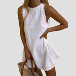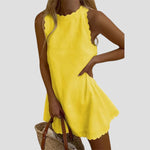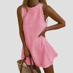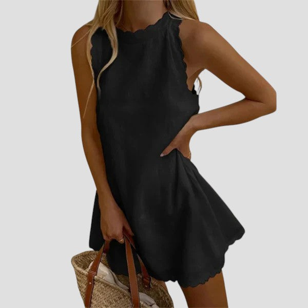 Tyto letní šaty jsou dokonalým spojením ženskosti a pohodlí. Jemně tvarovaný střih se zvlněnými okraji dodá každému kroku šmrnc, zatímco příjemný materiál zajistí maximální pohodlí i během nejteplejších dní. Ideální na dovolenou, do města nebo na letní večírek!
