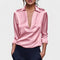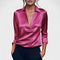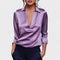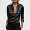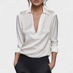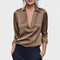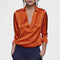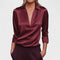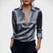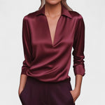 Luksuzna satenska završna obrada: Izrađena od visokokvalitetnog satena, vrhunska bluza s V-izrezom nudi mekan, elegantan sjaj koji trenutno podiže svaki izgled. Njena svilenkasta tekstura mekana je na dodir, osiguravajući cjelodnevnu udobnost.