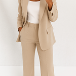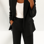 Objevte sadu Tereza Set – dvoudílnou sadu saka a kalhot, která kombinuje strukturu, eleganci a moderní minimalismus. Její na míru šitý slim fit střih zvýrazní vaši postavu a zároveň vám umožní volnost pohybu. Ideální pro zasedací místnosti, schůzky nebo elegantní večery.