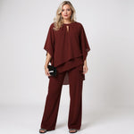 Tato sofistikovaná dámská sada kombinuje volný střih s vytříbeným stylem. Lehký a vzdušný materiál jemně splývá kolem postavy, což zaručuje maximální komfort i v náročných dnech. Nadčasový design je ideální pro oslavy, večírky nebo formální večeře.